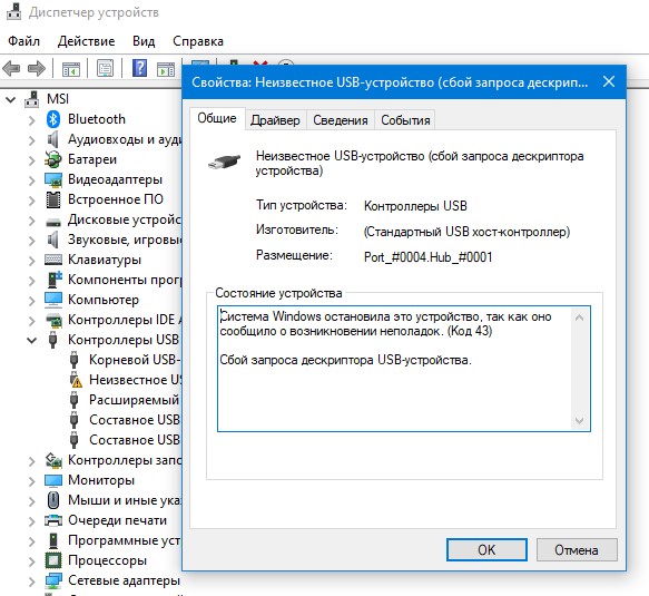 * Мышь после обновления определяется как: "Неизвестное USB-устройство (сбой запроса дескриптора устройства)".